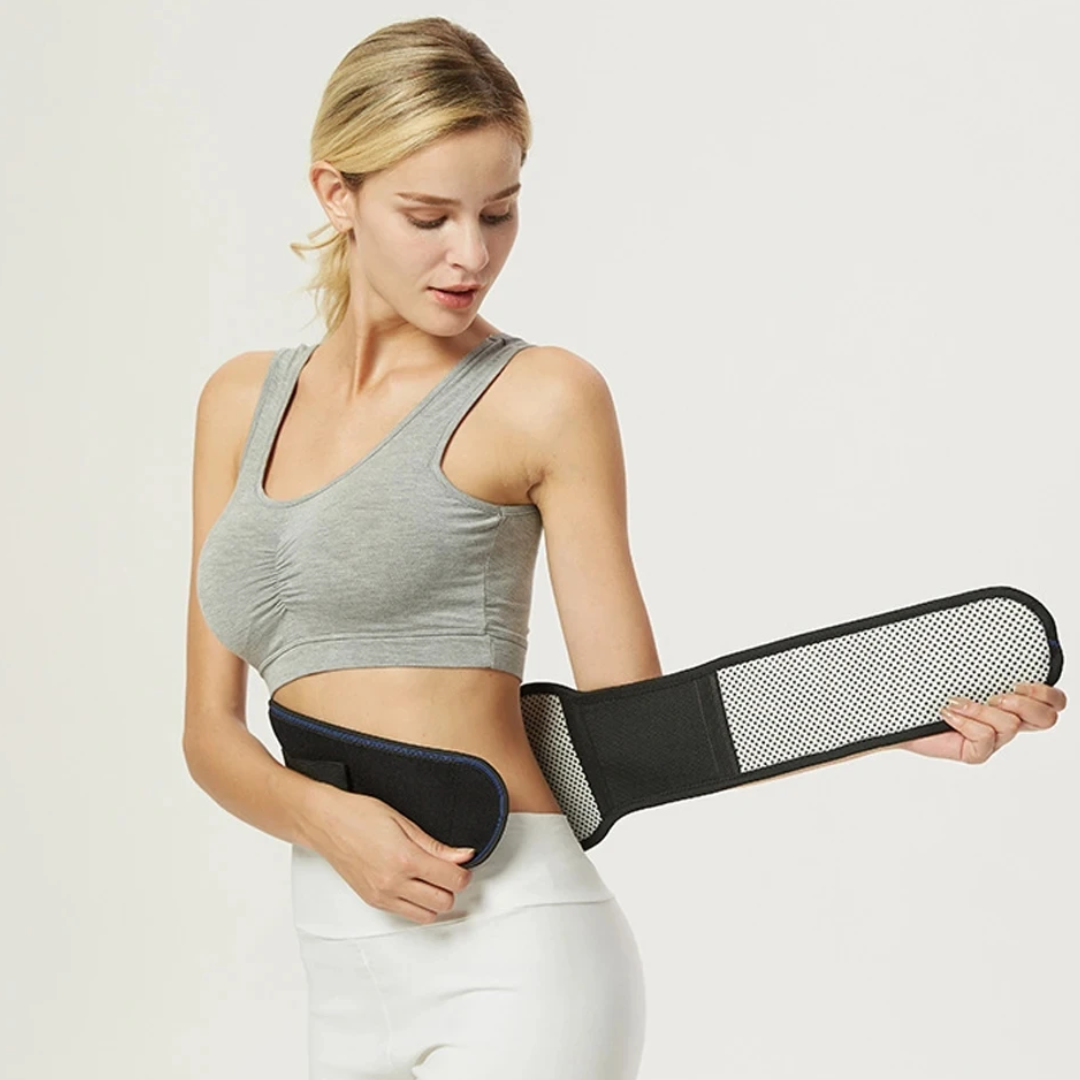 Thermora è una fascia lombare progettata per offrire sostegno, calore terapeutico e stimolazione magnetica in un unico prodotto.